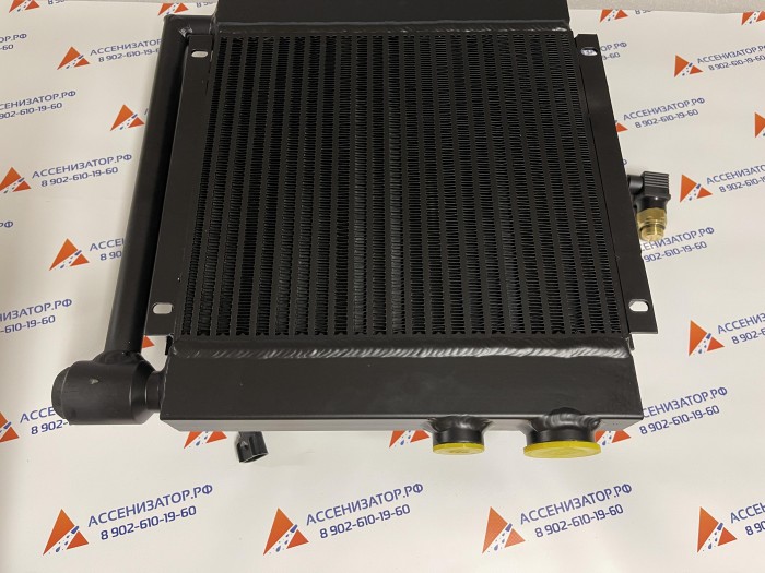 Благодаря небольшим габаритам и высокой производительности, данный маслоохладитель быстро стал популярным у "коммунальщиков". Теплообменник рассчитан на максимальный расход до 120 л/мин, при этом отводит до 10 кВт тепловой энергии. Переливной клапан, настроенный на 6 бар, предохраняет теплообменник от большого перепада давления вследствие непрогретой вязкой рабочей жидкости при "холодном" старте машины. Маслоохладитель оснащен термореле и вентилятором итальянского производства. Термореле и вентилятор защищены от воды по стандартам IP65 и IP68 соответственно. Каждый теплообменник проходит тест на герметичность.